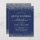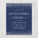 Die preisgekrönten Silver und Navy Blue Imitats Glitzer Sparkle Girly Quinceanera Celebration Party Einladungen beinhalten eine wunderschöne und elegante Schrift Typografie für die besondere 15. Geburtstagsfeier.