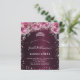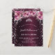 Eine moderne, stilvolle und glamouröse Einladung zu einer Quinceañera, 15. Geburtstagsfeier. Ein bordeauxrotes Imitat mit metallischem Hintergrund mit rosa Imitaten Glitzer Staub, eine Tiara Krone und rosa Blumen. Der Name ist mit einem modernen handgeschriebenen Stilskript geschrieben. Personalisieren Sie Ihre Party-Daten und fügen Sie sie hinzu.
