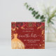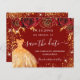 Eine gmädchenhafte und trendige Save the Date-Karte für eine Quinceañera, 15. Geburtstagsfeier. Stilvolle rote Rosen mit rotem Hintergrund, goldfarbene Imitate Glitzer Glitzern und Kleid. Personalisieren und fügen Sie Datum und Name/Alter hinzu. Der Text: Save the Date ist mit einem großen angesagten, handgeschriebenen Stilskript geschrieben.