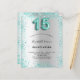Eine moderne, stilvolle und glamouröse Einladung für eine Girl's Quinceañera, 15. Geburtstagsfeier. Ein silbernes Imitat mit aquamarinem Glitzer-Staub. Personalisieren Sie Ihren Namen und Ihre Party-Daten und fügen Sie diese hinzu. Nummer 15 wird mit einem Schriftart im Ballonstil geschrieben, Skript.