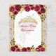 Eleganter goldener Bogen mit blumengeschmücktem Prinzessenkleid für die 15. Geburtstags-Quinceanera-Einladung.