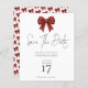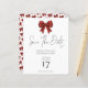 Budget Red Glitzer Coquette Bow Weihnachten Party Save the Date.. Ein preiswerter, kleiner 4,5 x 5,6" Glanz, ähnlich dick wie eine Postkarte. Es gibt eins pro Blatt. Sparkle, um Ihre festlichen Gäste mit einem Imitat Glitzer Bogen und koordinieren Pattren auf der anderen Seite auf klassisch schwarz. Ein stilvolles, informelles Set-Skript für Save the Date und die Erholung des Textes können Sie leicht personalisieren.