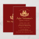 Budget Red Quinceanera Einladung mit einem minimalistischen Look und einem Gold Tiara Design.