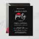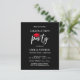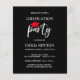 Budget Graduation Party Einladung mit moderner, handgeschriebener, gebürsteter Typografie und einer Graduiertenkappe mit Platz für Ihr Lieblingsgradportrait auf der Rückseite der Karte.