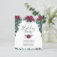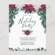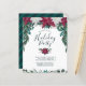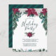 Dieses rustikale, bohobige Design besticht durch ein wunderschönes, kaskadenförmiges Aquarellbouquet mit Vintag bordeauxroten und weißen Poinsettien, kleinen Beeren und üppigem Winterblättern an der Spitze, u.a. Eukalyptusgrün und immergrüne Grünflächen in aquamarinen Grüntönen mit subtilen goldenen Details. Unter den poinsettias steht der Text "Bitte schließen Sie sich uns für eine Feier an" in beliebter Serif- und Kalligraphieschrift für einen handgeschriebenen Look in dunkelgrüner aquamariner Schrift, gefolgt von einem anpassbaren Text für die Details des Party und mehr Grün und Beeren unten. Auf der Rückseite der Karte befindet sich ein aquamariner grüner Hintergrund mit diagonal bordeauxroten, rosa und weißen Streifen, die zur Vorderseite passen. Sie können dieses Element personalisieren, indem Sie den Text in der Produktvorlage ändern.