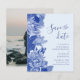 Budget Retro Blue Floral mit Foto Save the Date