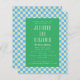 Budget Retro ästhetische Checkerboard Muster Blau und Grün Hochzeit Einladung