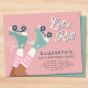 Coole preisgünstige Roller Skaten Geburtstagsfeier für jedes Alter mit "Let's Roll!" in einem weißen Drehbuch und einer Retro-inspiriert Abbildung aquamariner Roller-Skate auf einem Mädchen mit rosa gestreiften Röhrensocken. Fügen Sie ihren Namen und ihr Geburtstagsjahr in dunkelblauer Typografie hinzu.