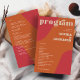 Abstract shapes retro vintage 70s style unique budget affordable groovy wedding program template with bold typography in a trendy modern red, beige, and orange terracotta boho chic autumn fall color palette. +++++++ Please note that all the colors are changeable. ++++++++++++ Suitable for casual informal stylish contemporary weddings.