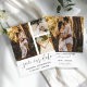 Elegant und einfach rettete unsere Datumsanzeige. Diese Vorlage bietet Platz für 3 Ihrer Lieblings-Paare-Fotos in Weiß mit cooler handgeschriebener Kalligraphie in dunkelgrau. Einfach mit Ihren eigenen, einzigartigen Details bearbeiten.