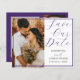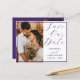Elegante Ankündigung Datum freihalten ist perfekt, um Ihre Hochzeitspläne in Gang zu bringen. Es verfügt über eine Fotovorlage und große "Save the Date" Typografie in tief lila auf einem weißen Hintergrund. Passen Sie Ihre persönlichen Daten an.