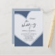 Budget Romantische Herzkalligraphie QR Code UAWG Dusty Blue Wedding Einladung... Unsere erschwingliche "All in one" romantische Herzensheirat-Einladung mit einem hellblau-grauen Herzrahmen, der in staubblauem Blau vor einem schieferblauen Hintergrund eingebettet ist. Im Herzen zeigt die schicke, moderne Kalligrafie den Text für "die Hochzeit von", "und" sowie "Empfang zu folgen", begleitet von eleganter Serifentypografie für den Text, den Sie leicht personalisieren können. Die dustig blaue Rückseite der Einladung zeigt den QR-Code Ihrer Hochzeitswebsite sowie die URL der Website selbst, sodass Ihre Einladungen einfach online UAWG werden können und alle Details, die normalerweise in einem Hochzeitspaket verschickt werden, anzeigen können. Das Beispiel QR-Codegrafik und alle Beispieltexte (außer den kalligraphischen Elementen) können mit eigenen Informationen über die Personalisierungsvorlage leicht überarbeitet werden. Diese moderne Einladung ist zeitgemäß und elegant romantisch zugleich, speziell für geschäftige Bräute geschaffen.