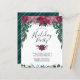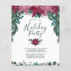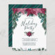 Dieses rustikale, bohobige Design besticht durch ein hübsches, kaskadenförmiges Aquarellbouquet mit Vintag bordeauxroten und rot rosa rosa goldenen Poinsettias, kleinen Beeren und üppigem Winterblättern an der Vorderseite, darunter Eukalyptusgrün und immergrüne Grünflächen in aquamarinen Grüntönen mit subtilen goldenen Details. Unter den poinsettias steht der Text "Bitte schließen Sie sich uns für eine Feier an" in beliebter Serif- und Kalligraphieschrift für einen handgeschriebenen Look in dunkelgrüner aquamariner Schrift, gefolgt von einem anpassbaren Text für die Details des Party und mehr Grün und Beeren unten. Auf der Rückseite der Karte befindet sich ein aquamariner grüner Hintergrund mit diagonal bordeauxroten, rosa und weißen Streifen, die zur Vorderseite passen. Sie können dieses Element personalisieren, indem Sie den Text in der Produktvorlage ändern.