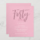 Das Design zeichnet sich durch einen dunklen Farbverlauf aus, wobei das Wort "vierzig" in glänzenden, rosa Buchstaben auffällt. Aber es gibt noch etwas Anderes: Die Buchstaben erzeugen einen coolen Schatteneffekt, sodass sie aussehen, als würden sie aus der Seite springen. Es ist nicht nur eine Zahl, es ist eine große Sache. Diese Einladung ist Sprichwort: "Mach dich bereit für ein elegantes und stilvolles Party!"