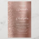 Die links Kulisse dieser eleganten, modernen Hochzeitseinladung besticht durch eine Rose Gold Imitat Glitzer-Grenze. Der anpassbare Text kombiniert weiße Handschrift, Kupferplatte und kursiven Schriftart auf einer Rose goldfarbenen Imitaten aus gebürstetem Metall. Die Rückseite ist mit einem passenden Glitzer und einem gebürsteten Metalldesign ausgestattet.
