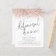 Eine günstige BUDGET-Alternative für eine kleinere Größe von 4,5 x 5,6 Zoll, die ein Gewicht von 110 lbs hat, die ähnlich dick ist wie eine Postkarte (sie ist jedoch nicht als Postkarte geeignet). BITTE BEACHTEN SIE, DASS ES EINE Einladung pro Blatt gibt. Budget Rose Gold Glitzer Hochzeit Probe Dinner Einladung. Dieses moderne Design verfügt über ein elegantes, informelles Set-Skript für das Probe Dinner und die Erholung der Typografie, die Sie leicht personalisieren können. Imitate Glitzer in Rose Gold grenzt an die Spitze auf beiden Seiten.