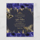 Budget Elegant Royal Blue Gold Floral Butterflies Quinceañera Quince Einladung