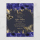 Budget Elegant Royal Blue Gold Floral Butterflies Sweet 16 Einladung