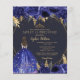 Budget Elegant Royal Blue Gold BlumenPrinzessin Sweet 16 Einladung