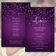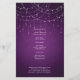 Budget Royal Lila String Lights Wedding Programm. Ein Preis größer in einer Vielzahl von Papiersorten für Ihre Hochzeitsmenüs. Gradient Damast Hintergrund mit schönen Saitenleuchten. Personalisieren Sie die Erholung des Textes einfach. Die Schriftart-Farben können über das Menü Bearbeiten geändert werden.