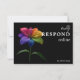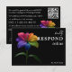 A sleek and modern RSVP card from the Technicolor Love collection, designed in a clean horizontal format that feels contemporary, simple, and effortless for guests to use. The signature rainbow lily adds a vibrant burst of colour along one side, creating a bold, cohesive look that pairs beautifully with the rest of your suite.