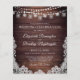 Rustikale Hochzeitseinladungen auf leichtgewichtigen Papieren, ideal für konservative Budgets und handgefertigte Übergabe an die Gäste. Schönes Landholz mit leuchtenden Saitenleuchten, Party-Leuchten und Maurerkrügen und mit weißer Spitze versehen. Der gesamte Text kann bearbeitet werden, um den Text an Ihre Bedürfnisse anzupassen. Wenden Sie sich an den Designer über den Zazzle Chat oder makeitaboutyoustore@gmail.com , wenn Sie dieses Design modifizieren möchten, an einem anderen Produkt oder an einem koordinierenden Artikel.