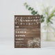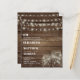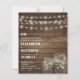 Set den Ton für Ihr Country-Fest mit diesen rustikalen Hochzeitsartikeln, die einen warmen Holzboden, leuchtende Saitenlichter und charmante Mauerkirschen bieten. Dieses rustikale Design ist perfekt für Stallhochzeiten, Feiern im Freien oder gemütliche Abend-Zeremonien geeignet und schafft eine einladende und romantische Atmosphäre. Passen Sie Ihre Namen, Ihre Hochzeitsdetails und Ihre Veranstaltungsinformationen an, um die perfekte Einladung / Schreibwaren zu gestalten, die Ihren rustikalen Stil widerspiegelt.