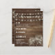 Set den Ton für Ihr Country-Fest mit diesen rustikalen Hochzeitsartikeln, die einen warmen Holzboden, leuchtende Saitenlichter und charmante Mauerkirschen bieten. Dieses rustikale Design ist perfekt für Stallhochzeiten, Feiern im Freien oder gemütliche Abend-Zeremonien geeignet und schafft eine einladende und romantische Atmosphäre. Passen Sie Ihre Namen, Ihre Hochzeitsdetails und Ihre Veranstaltungsinformationen an, um die perfekte Einladung / Schreibwaren zu gestalten, die Ihren rustikalen Stil widerspiegelt.