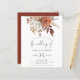 Budget Rustic Terracotta Florals QR Hochzeitseinladung. Eine preisgünstige, kleinere Einladung für Halbschwanz. Es gibt EINS pro Blatt. Fügen Sie Ihren QR-Code zu Ihrer Hochzeitswebsite auf der Rückseite hinzu, damit Ihre Gäste alle Details online sehen können, ohne separate Gehäuse benötigen zu müssen. Eine informelle Set-Typografie in schwarz für die Hauptüberschrift der Hochzeit von Ergänzung der Erholung des Textes, die Sie leicht personalisieren können.