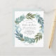 Das ist ein rustikales Blattdesign, das in einem Kranz angeordnet ist, um Ihre einzigartigen Hochzeitsinformationen zu enthalten. Die Illustration besteht aus botanischen Elementen im Aquarellstil und einem Farbschema aus Salbei-Grüntönen und weichen staubigen Blues. Einfach zu bearbeiten Vorlage.