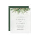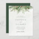 Schöne, erschwingliche Save the Date-Karte mit handgemalten botanischen Aquarellbildern aus Wintergrün, Kiefer- und Fichtenzweigen, Zapfen und Heilige Beeren. Ideal für Hochzeiten im Winter oder Weihnachten.