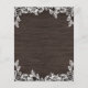 Die rustikale Brautdusche aus Holz mit weißer Saitenleuchte, weißes Spitzen-Blumenmuster auf dem dunklen Holzboden. Die Rückseite dieser Einladung ist ein weißes Blumenmuster aus Holz. Personalisieren Sie es und genießen Sie es. Bitte beachten Sie, dass Umschläge in diesem Design NICHT enthalten sind. Wenn Sie Umschläge benötigen, Karo Sie bitte unsere Kollektion oder kaufen Sie sie separat vom Marktplatz.