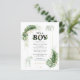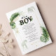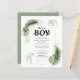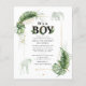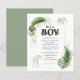 Giraffe zum Thema Wildwald und elegante Jungs Safari Baby Dusche Einladung mit einer Giraffe, einem Elefanten, Goldfolie und grünen Blätter. Perfekt für die Einladungen eines kleinen Jungen mit einer Babydusche