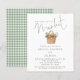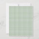 Budget Sage Gingham She’s off the Market Script Bridal Shower. A budget priced smaller 4.5 x 5.6 inch 110lbs semi-gloss. There is one per sheet. The script for the word Market is in an elegant non-editable style. The rest of the text you can easily personalise. Green Gingham is on the reverse.