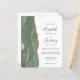 The left-hand edge of this elegant modern wedding invitation features a sage green watercolor agate border trimmed with faux gold glitter. The customizable text combines handwriting, copperplate and italic fonts in charcoal gray on a white background. The reverse side provides space for wedding details on a solid white background, along with a QR code guests can scan to visit your website and RSVP. NOTE: Envelopes are not automatically included with these budget invitations, so please remember to choose the "white envelopes" option!