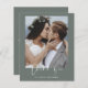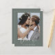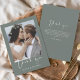 Budget Sage Green Wedding Dankeschön Karten, die ein Foto auf der Vorder- und Rückseite haben. Die Dankeschön-Karten enthalten eine moderne, handgeschriebene, kursive Schriftzeichen-Typografie, die elegant, einfach und modern nach Ihrer Hochzeitsfeier zu benutzen sind.