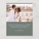 Budget Sage Green Wedding Dankeschön Karten, die ein Foto auf der Vorder- und Rückseite haben. Die Dankeschön-Karten enthalten eine moderne, handgeschriebene, kursive Schriftzeichen-Typografie, die elegant, einfach und modern nach einem minimalistischen einfachen Hochzeitstag-Fest zu verwenden sind.