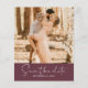 Chic Drehbuch boho Foto Save the Date Flyer mit Ihren Namen, Hochzeitsdatum, Standort und Hochzeitswebsite in weißer, eleganter Schrift-Kalligraphie und moderne Typografie auf bordeauxroten Hintergrund. Fügen Sie einfach Ihre persönlichen Daten und Ihr Lieblings-Foto hinzu! Exklusiv für Sie entworfen von Happy Dolphin Studio. Wenn Sie Hilfe oder passende Produkte benötigen, kontaktieren Sie uns bitte über unseren Chat. Wir helfen Ihnen gerne, Ihre Hochzeit zum schönsten Tag zu machen!