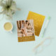 Chic Drehbuch boho Foto Save the Date Flyer mit Ihren Namen, Hochzeitsdatum, Standort und Hochzeitswebsite in weißer eleganter handgeschriebener Schrift Kalligraphie und moderne Typografie auf einem klassischen goldenen Hintergrund. Fügen Sie einfach Ihre persönlichen Daten und Ihr Lieblings-Foto hinzu! Exklusiv für Sie entworfen von Happy Dolphin Studio. Wenn Sie Hilfe oder passende Produkte benötigen, kontaktieren Sie uns bitte über unseren Chat. Wir helfen Ihnen gerne, Ihre Hochzeit zum schönsten Tag zu machen!