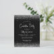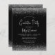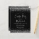 Diese schlichte, elegante Graduiertenparty lädt mit einem Glitzer auf schwarzem Hintergrund auf silbernen Imitaten oben und unten zum Abschluss ein. Das Wort "Abschluss" und der Name des Absolventen erscheinen im dekorativen modernen Schriftart der Handschrift. Passen Sie die Einladung mit Party-Details in weißen Sans Serif-Schriftart auf einem schwarzen Hintergrund an. Auf der Rückseite wird ein passendes Schwarz-Silber-Glitzer-Design angezeigt.