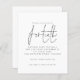 Budget Einfaches Schwarz-weißes Skript 40. Geburtstag Party Einladung. Ein Preis SMALLER 4,5" x 5,6" Alternative. Erhältlich in einem SEMI GLOSS 110lb CARD STOCK, der die Standardoption ist (empfohlen für Einladungen, ähnlich der Dicke einer Postkarte), ODER einem SATIN FINISH 80 lb THINNER PAPER STOCK (ideal für Gehäuse). Minimalistischer Stil in Schwarz und Weiß mit diesem Text nur Design, mit dem Anlass-Header in einem stilvollen Set informellen Skript. Personalisieren Sie die Erholung des Textes einfach auf Ihre eigenen Daten. Die Text- und Hintergrundfarben können durch die weitere Option nach Bedarf in eine beliebige Farbe geändert werden.