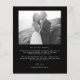 Dies ist eine preisgünstige moderne und elegante Schwarz-Weiß-Foto Hochzeit Dankeschön-Karte mit einem handgeschriebenen Skript-Schriftart, gedruckt auf einem Blatt Papier. Ändern Sie die Farben, Text und Foto einfach. Auf der Rückseite befindet sich ein weiteres Foto und eine Danksagung, die Sie personalisieren können. Bitte kontaktieren Sie den Designer, wenn Sie Fragen zu diesem Design haben.