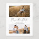 Budget Script 3 Foto Hochzeit Speichern Sie die Datumskarte. Die Rückseite enthält zusätzliche Details. Klicken Sie auf die Schaltfläche Bearbeiten, um dieses Design mit Ihren Fotos und Hochzeitsdetails anzupassen.