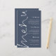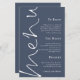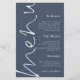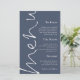 Budget Skript Dusty Navy Blue Wedding Menü. Dieses moderne Design hat Menü in elegantem Set-Skript, das auf der links Seite läuft und die Erholung des Textes auf der rechten Seite ausgerichtet ist, die Sie leicht personalisieren können, sowie Ihre Namen und das Hochzeitstag auf der Rückseite. Text- und Hintergrundfarben auf beiden Seiten können über die Option Weitere anpassen auf jede beliebige Seite geändert werden.