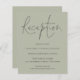 Budget Script Empfang Details Light Sage Green Wedding Enclosure. Ein Preis SMALLER 4,5" x 5,6" Alternative. Erhältlich in einem SEMI GLOSS 110lb CARD STOCK, welches die Standardoption ist (empfohlen für Einladungen), ODER einem SATIN FINISH 80lb THINNER PAPER STOCK (ideal für Gehäuse). Umschläge sind optional und etwas größer als die Kartengröße. Ein elegantes Set Handschrift Stift für die Überschrift und die Erholung des Textes können Sie leicht personalisieren.