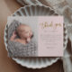 Dieses moderne Foto Dankeschön Notizzettel mit goldenem Drehbuch, persönlicher Nachricht und einem vertikalen Foto auf der Vorderseite. Auf der Rückseite befindet sich ein zweites Baby-Foto, das ein volles, waagerechtes Foto ist.