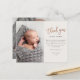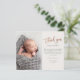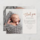 Dieses moderne Foto Dankeschön-Anmerkung verfügt über Rose Gold handgeschriebene Drehbuch danke, persönliche Nachricht und ein vertikales Foto auf der Vorderseite. Auf der Rückseite befindet sich ein zweites Baby-Foto, das ein volles, waagerechtes Foto ist.