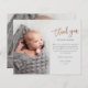 Dieses moderne Foto Dankeschön-Anmerkung verfügt über Rose Gold handgeschriebene Drehbuch danke, persönliche Nachricht und ein vertikales Foto auf der Vorderseite. Auf der Rückseite befindet sich ein zweites Baby-Foto, das ein volles, waagerechtes Foto ist.