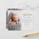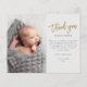 Dieses moderne Foto Dankeschön Notizzettel mit goldenem Drehbuch, persönlicher Nachricht und einem vertikalen Foto auf der Vorderseite. Auf der Rückseite befindet sich ein zweites Baby-Foto, das ein volles, waagerechtes Foto ist.