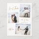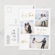 Elegantes Budget Minimalistisch Handschrift Drehbuch Collage erschwingliche Hochzeit Vielen Dank PostCard in Gold und Weiß. Einfache niedliche Hochzeitskartenvorlage mit drei (3) Foto vorne, locker arrangierten Collage-Bildern und einem Foto auf der Rückseite. Mit dem Text "Liebe und Dank" in einer hübschen Hand geschrieben Typografie Skript-Schriftart. Fügen Sie Ihren Namen und Dankeschön Nachricht.
